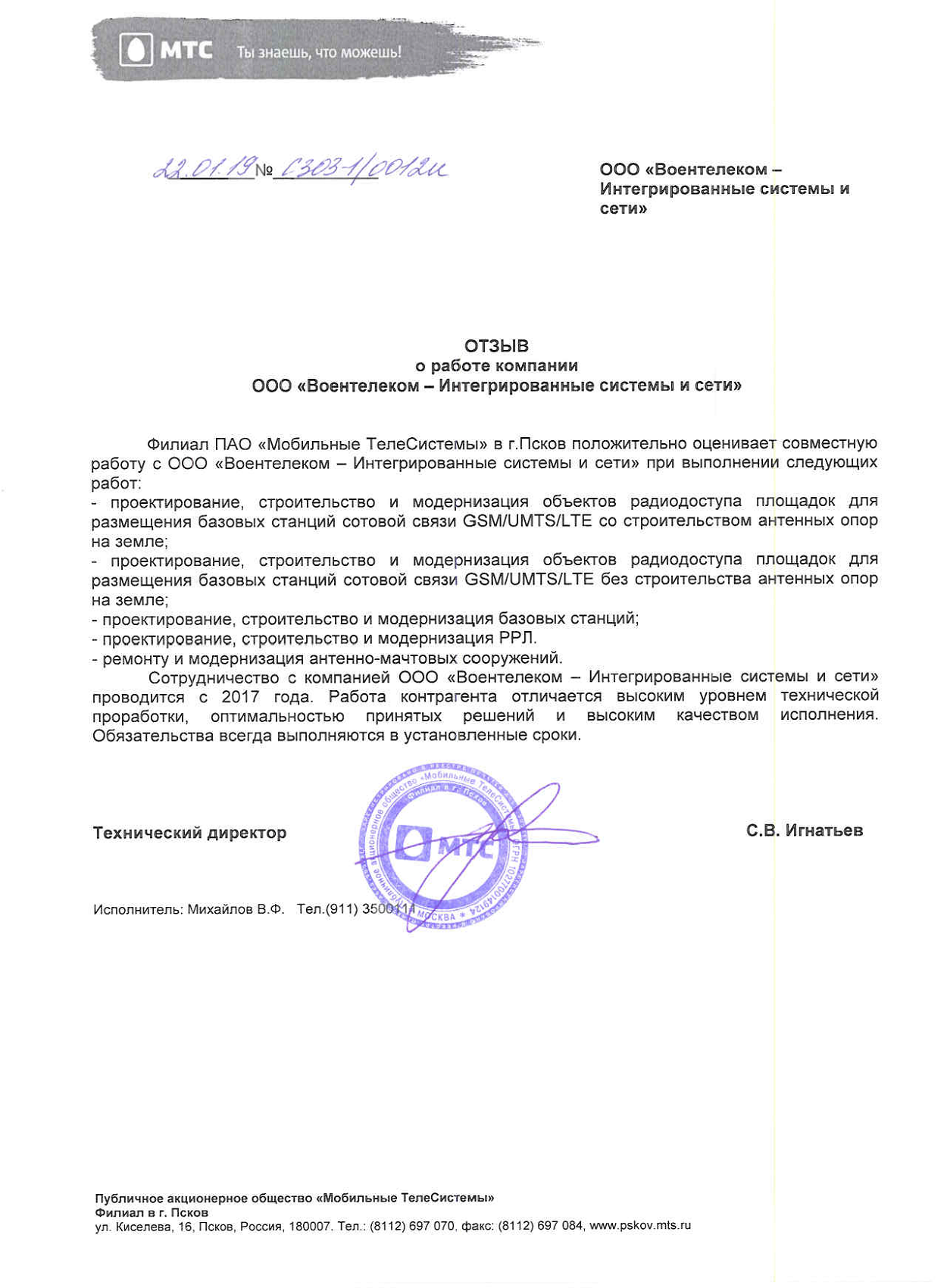 Организация имеет ряд положительных отзывов от Заказчиков: